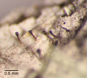 Paracalicium piceae {species} - Ascomycota; Eurotiomycetes; Mycocaliciales; Sphinctrinaceae; Paracalicium;
